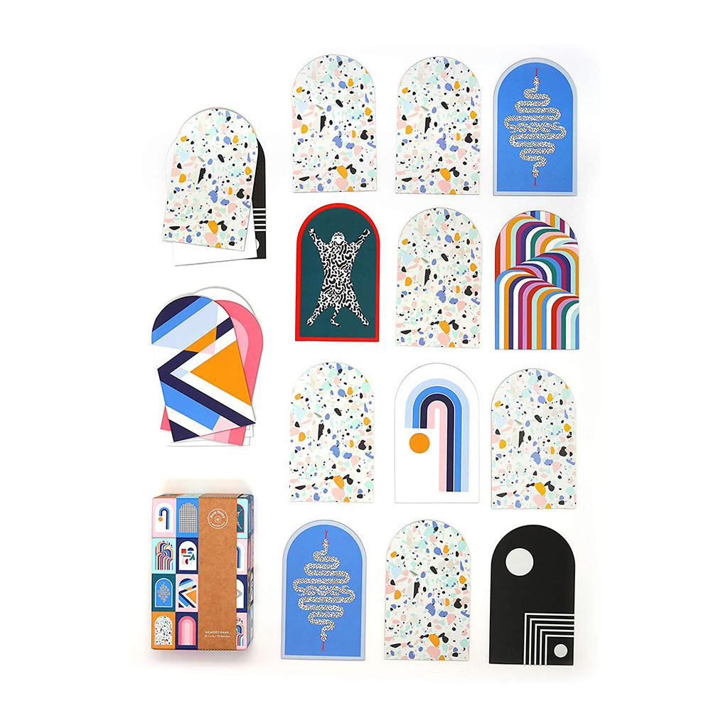 - TEN DESIGNS: The memory game includes 20 cards (10 matches) featuring favorite Now House designs, each with Terrazzo on the reverse side. Cards measure 7.25” x 5” each.