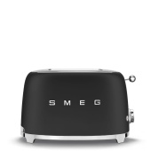 Finished in modern matte black and accented with a charming chrome ball-lever knob, this retro toaster browns bread at six levels with three convenient pre-set programs. Extra-side slots accommodate different slice widths, and self-centering racks ensure even toasting. Known for its wonderfully retro refrigerators, Smeg has launched a joyfully designed retro kitchen appliance collection based on the curved and compact lines of postwar design. Smeg's nod to the past is the star of today's kitchen, incorporating all the current advances in technology.