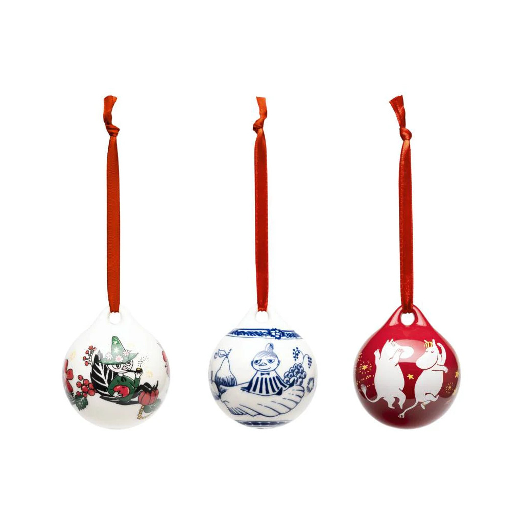 Średnica: 5 cm. Materiał: porcelana. Czyścić miękką, suchą ściereczką. Zaprojektowano w Finlandii. Wyprodukowano w Tajlandii. Wprowadź odrobinę magii Muminków w świąteczny sezon! Zestaw mini bombek prezentuje urokliwe, świąteczne wzory z lat 2023, 2024 i 2025, dzięki czemu stanowi doskonały dodatek do świątecznych dekoracji.