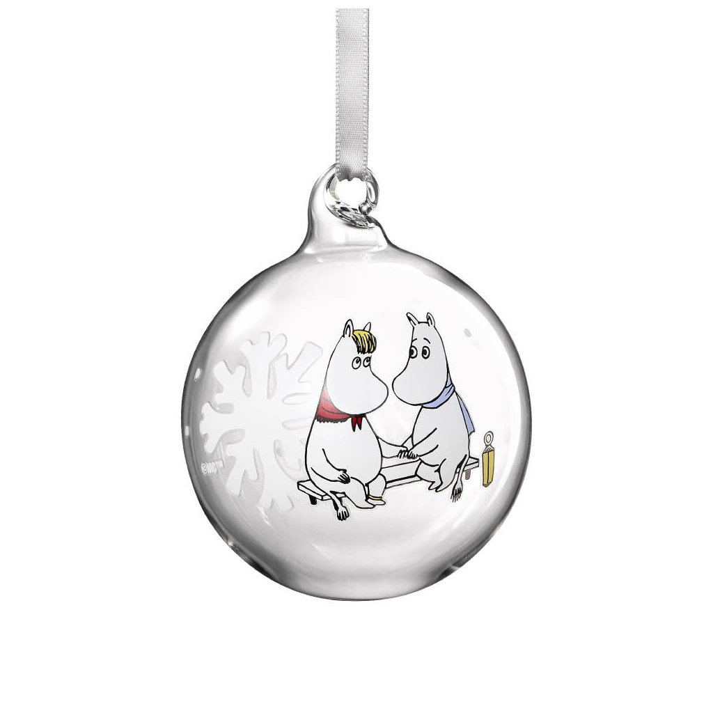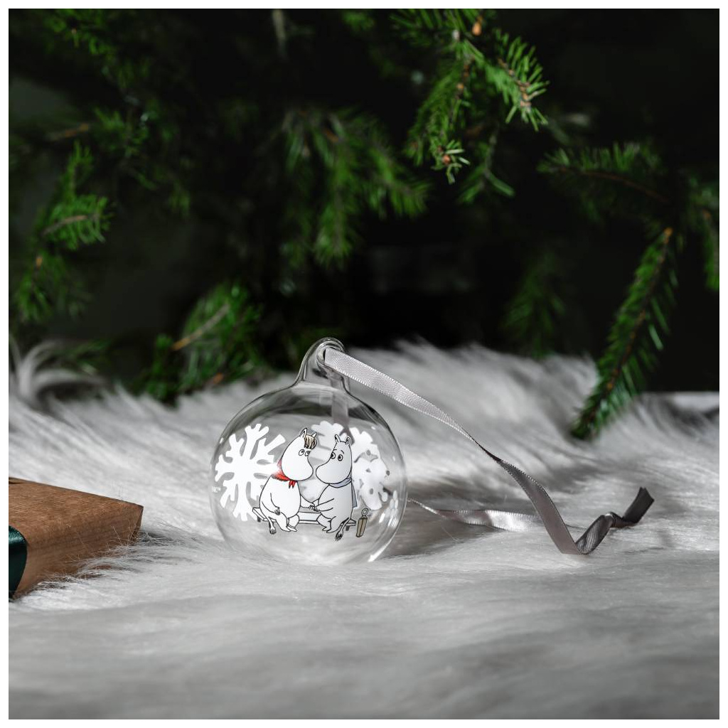Decorate your home with a pinch of Moominvalley's Christmas magic! The Moomin glass baubles are perfect for hanging from the Christmas tree or in the window. Hand made. Satin ribbon included. Diameter 7cm.