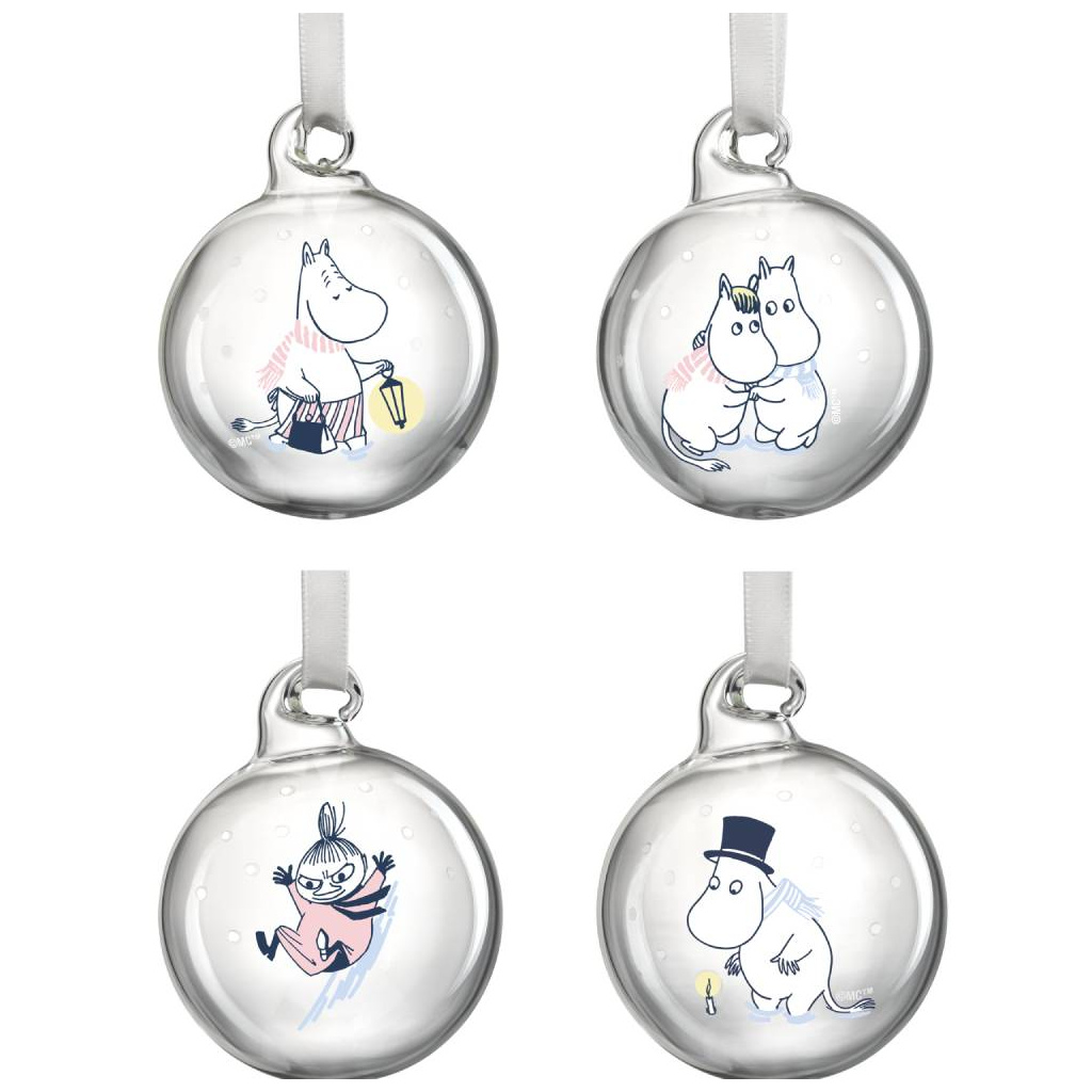 Komplet bombek szklanych muminki 5 cm MOOMIN LET IT SNOW CHRISTMAS BAUBLE 4 SET