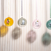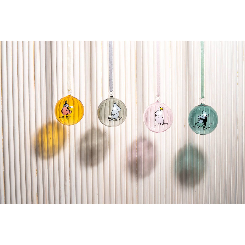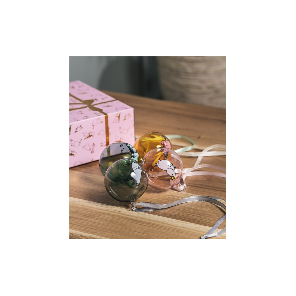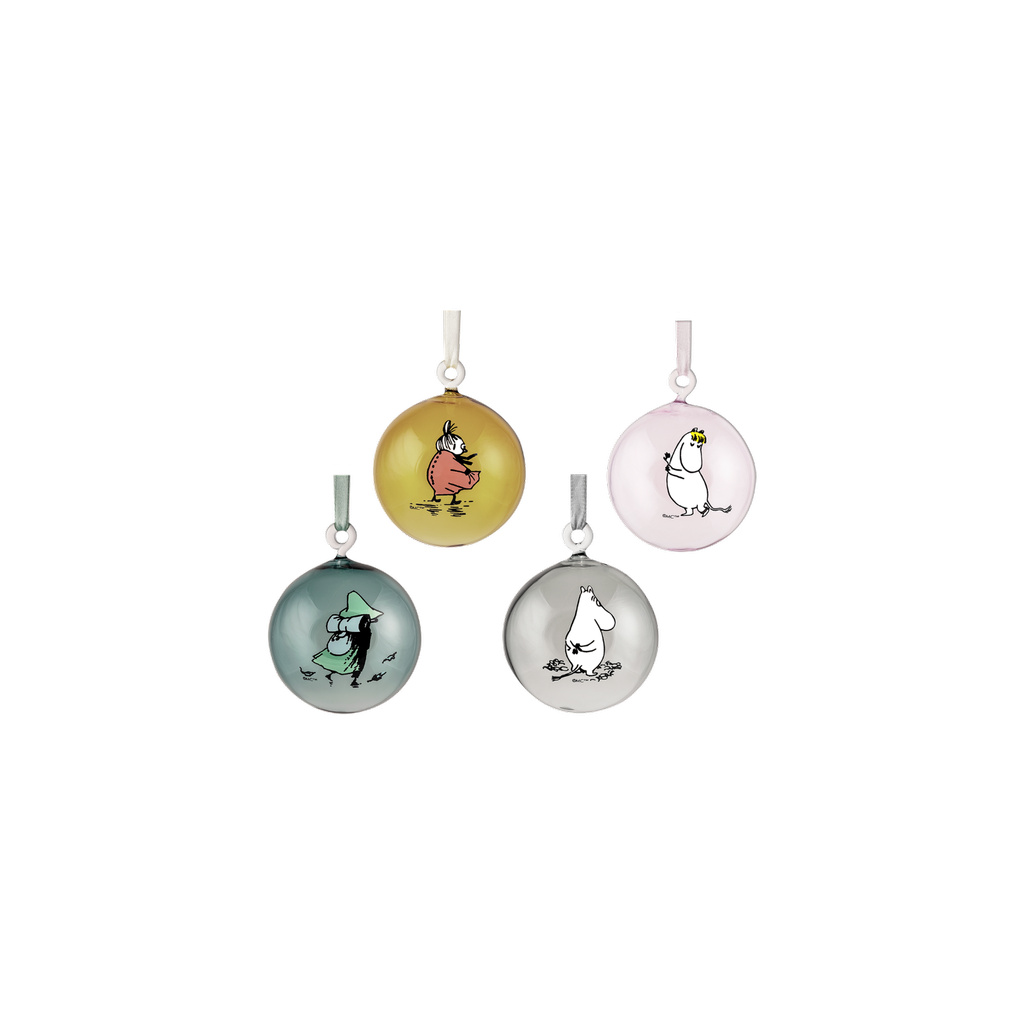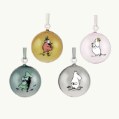 Create a cozy ambience with the Moomin decoration balls! Comes in a gift box of four pieces. Mouth-blown from lead-free glass. Designed in Finland.
