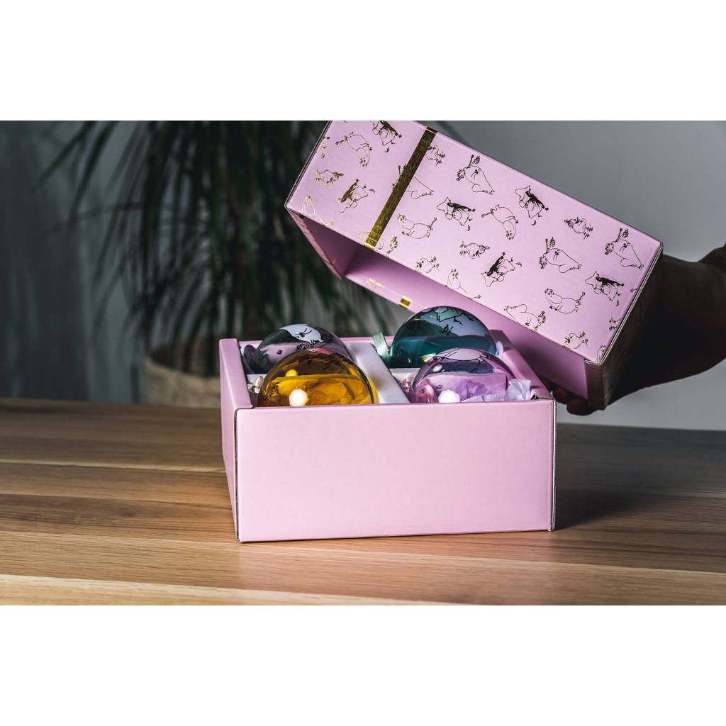 Komplet szklanych bombek muminki w opakowaniu prezentowym 7 cm GLASS DECORATION BALL GIFT SET 4