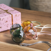 The decoration ball are designed for decoration the tree, but can also give a nice wintery touch to other spots in your home - hang it by the window, door or anywhere! Handmade from lead-free glass. Satin ribbon included. Ø7 cm.