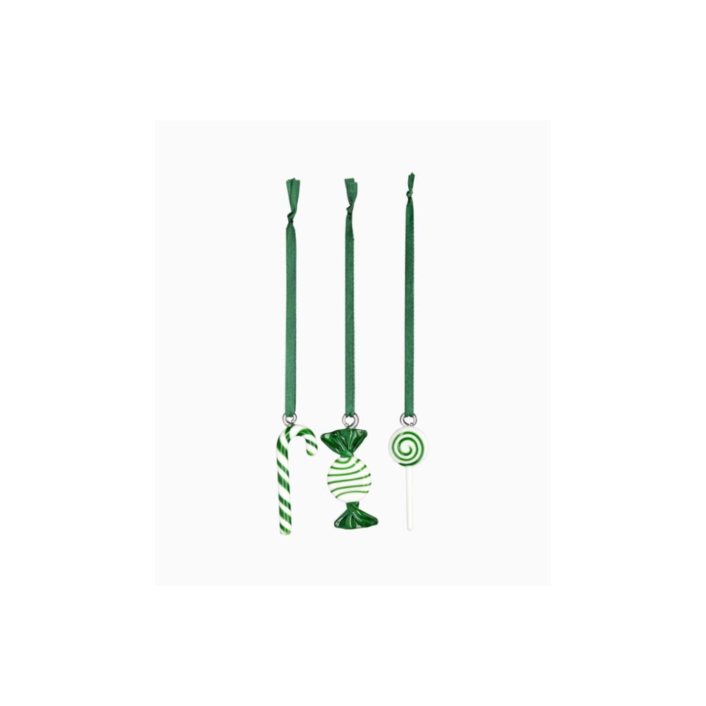 Komplet zawieszek cukierków 8 cm CHRISTMAS DECORATION GLASS SWEETS SET 3 - Green