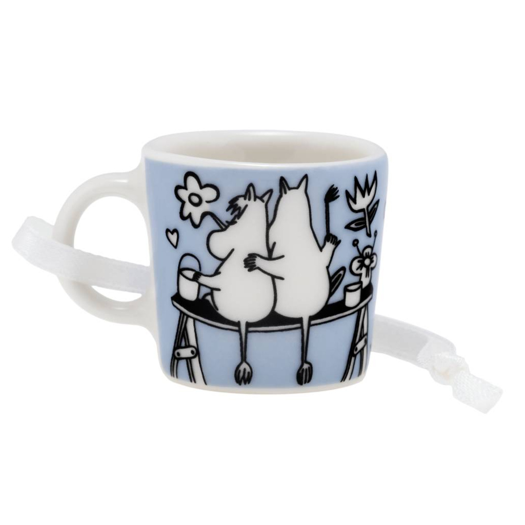 The 12-millilitre mugs are mini-sized reproductions of the beloved Moomin mugs. The minimug features Snorkmaiden and Moomintroll hugging each other. The two like to play and spend time together, but their relationship is also romantic.