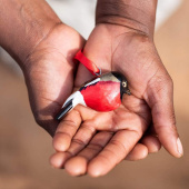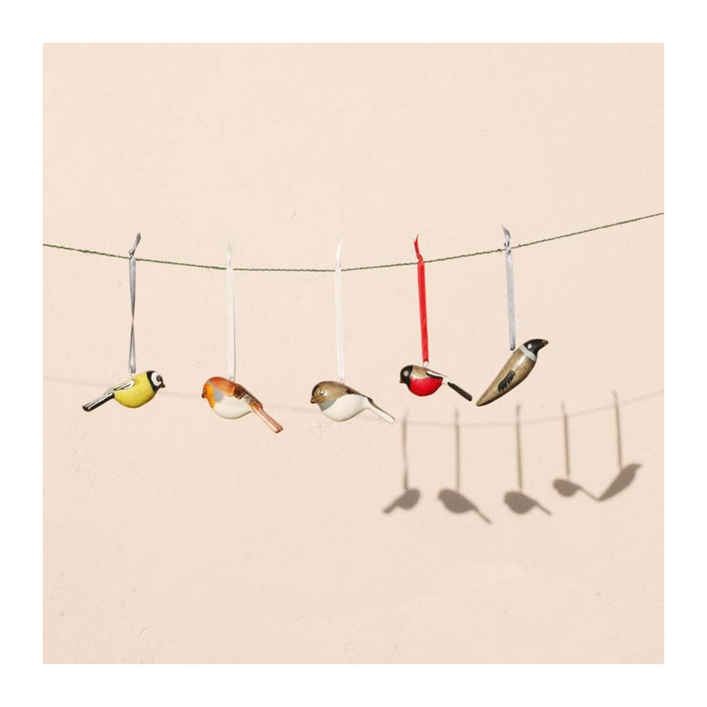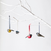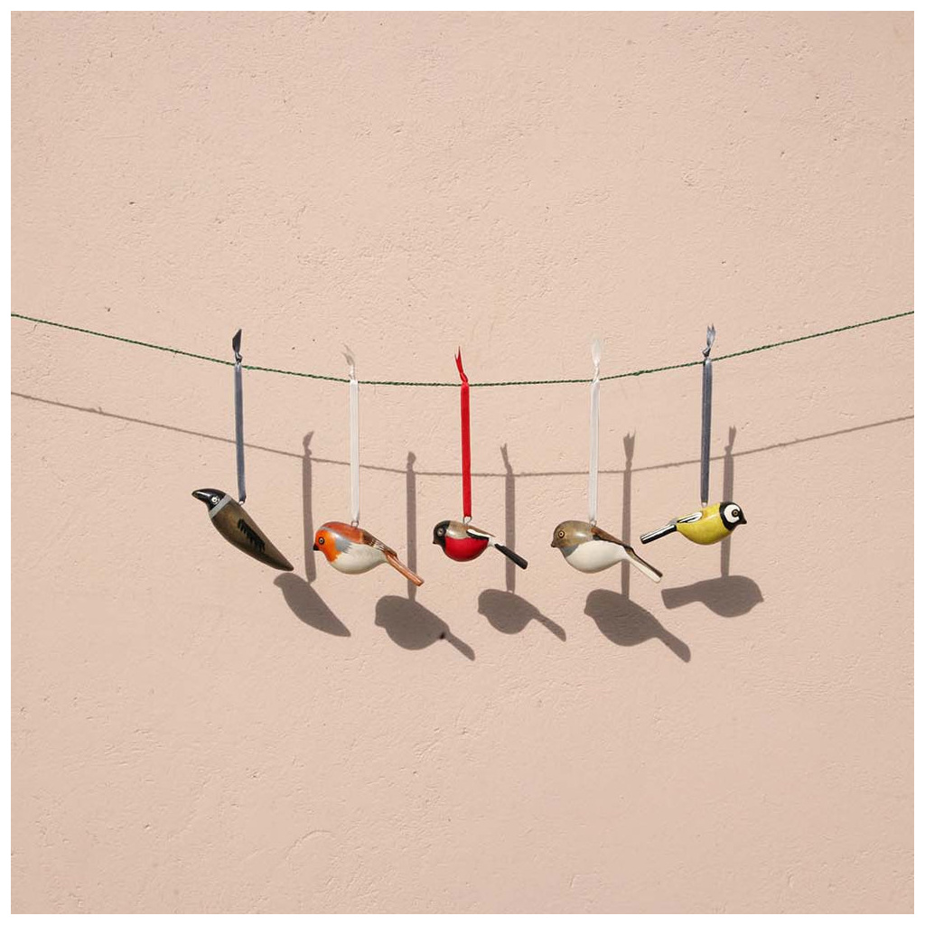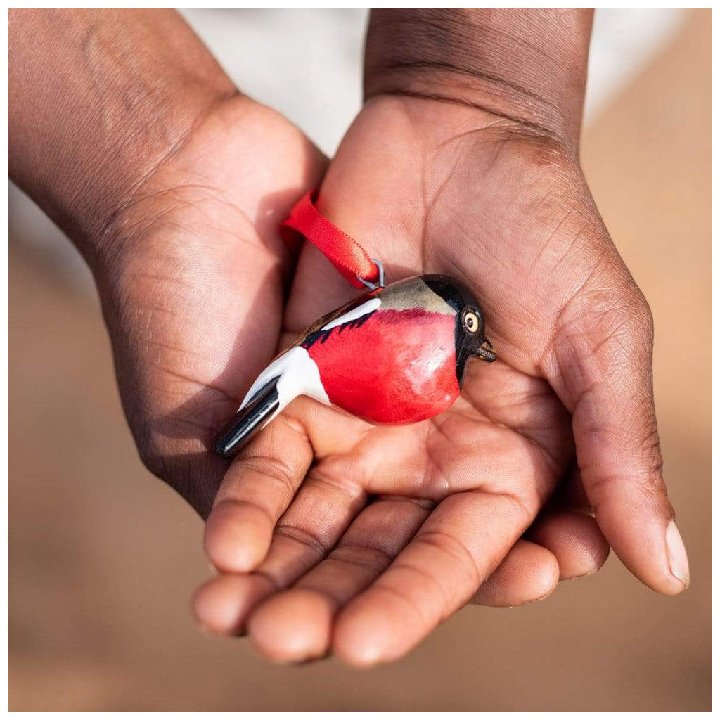 Our painted bird and animal ornaments are carved by hand out of fallen jacaranda tree branches and surplus wood. They are made in Nicodemus and Cecilia’s Fair Trade workshop in the outskirts of Nairobi, Kenya. Nicodemus and Cecilia have a small family workshop specializing in wood carving, and Mifuko has been collaborating with them since 2010. All the artisans have been trained by Nicodemus’ parents, thus passing on the handicraft tradition to a younger generation. The entire process of carving, sanding and painting is done by hand by talented artisans. While the branches are still soft, they are cut and carved into birds and then dried before sanding. The delicate wooden birds are then painted meticulously with water-based acrylic colors. Once painted, each bird gets six coats of clear varnish with time to dry between each application. Each bird takes several hours to finish, and each is unique.