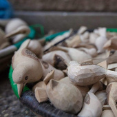 Our painted bird and animal ornaments are carved by hand out of fallen jacaranda tree branches and surplus wood. They are made in Nicodemus and Cecilia’s Fair Trade workshop in the outskirts of Nairobi, Kenya. Nicodemus and Cecilia have a small family workshop specializing in wood carving, and Mifuko has been collaborating with them since 2010. All the artisans have been trained by Nicodemus’ parents, thus passing on the handicraft tradition to a younger generation. The entire process of carving, sanding and painting is done by hand by talented artisans. While the branches are still soft, they are cut and carved into birds and then dried before sanding. The delicate wooden birds are then painted meticulously with water-based acrylic colors. Once painted, each bird gets six coats of clear varnish with time to dry between each application. Each bird takes several hours to finish, and each is unique.