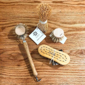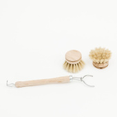 Dish brush in beech and horse hair, you can replace the brush with a refill part no 1101-01. Horse hair is soft and gentle and doeffectively clean without scratchingporcelain. Machine Made.