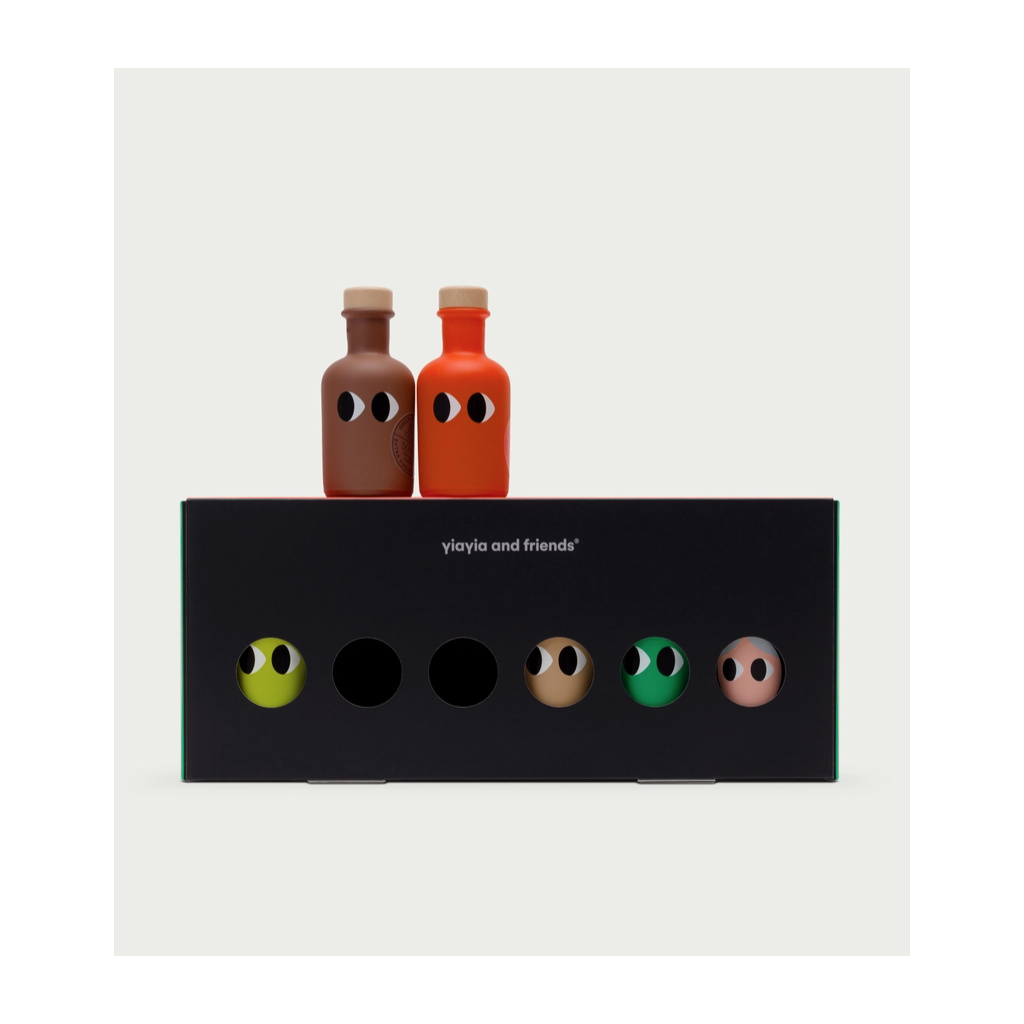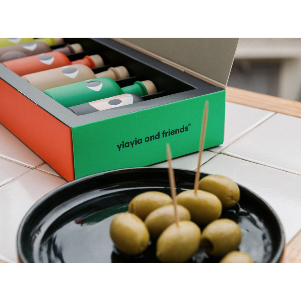 Introducing our special box featuring six all-time favorite flavors! Dive into the delightful world of yiayia and friends with our assortment of extra virgin olive oil minis: tangy lemon, earthy truffle, spicy chili, refreshing basil, pungent garlic, and the beloved original EVOO.