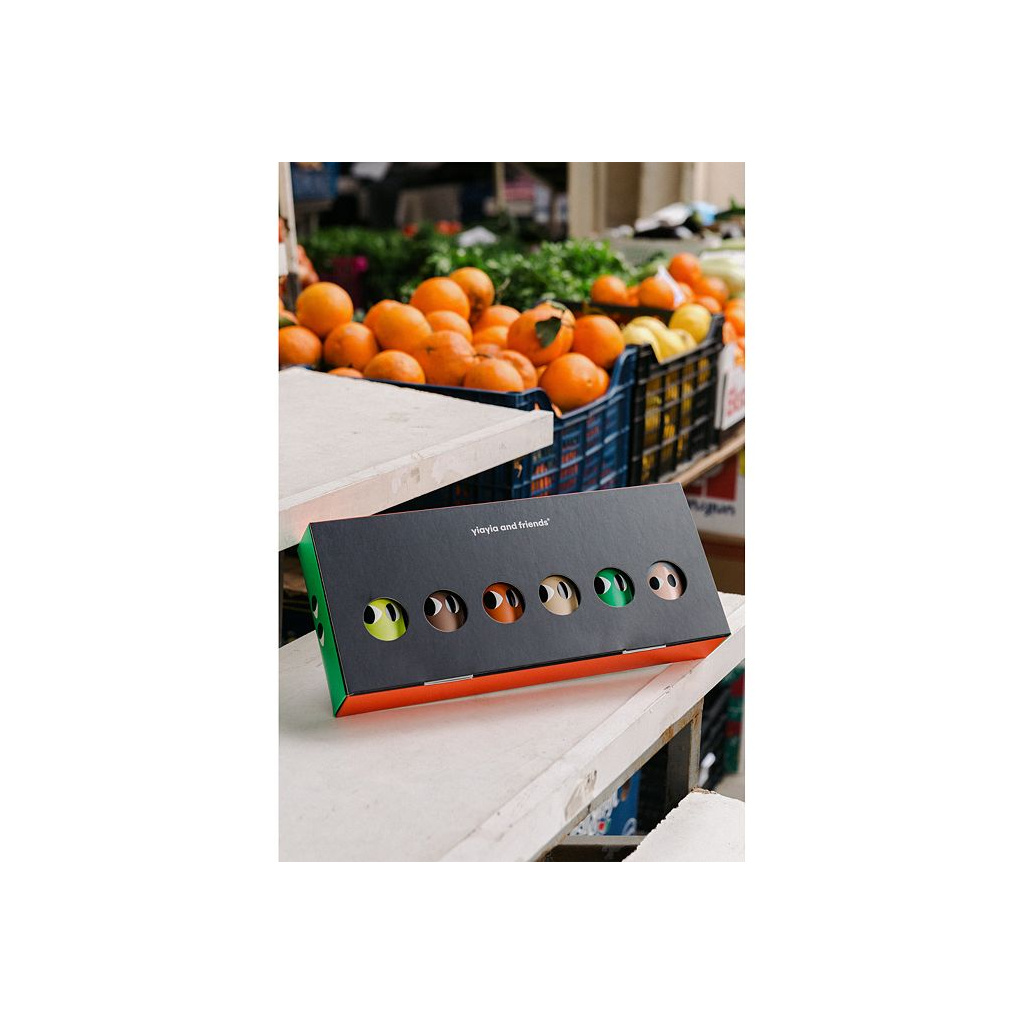 Introducing our special box featuring six all-time favorite flavors! Dive into the delightful world of yiayia and friends with our assortment of extra virgin olive oil minis: tangy lemon, earthy truffle, spicy chili, refreshing basil, pungent garlic, and the beloved original EVOO.