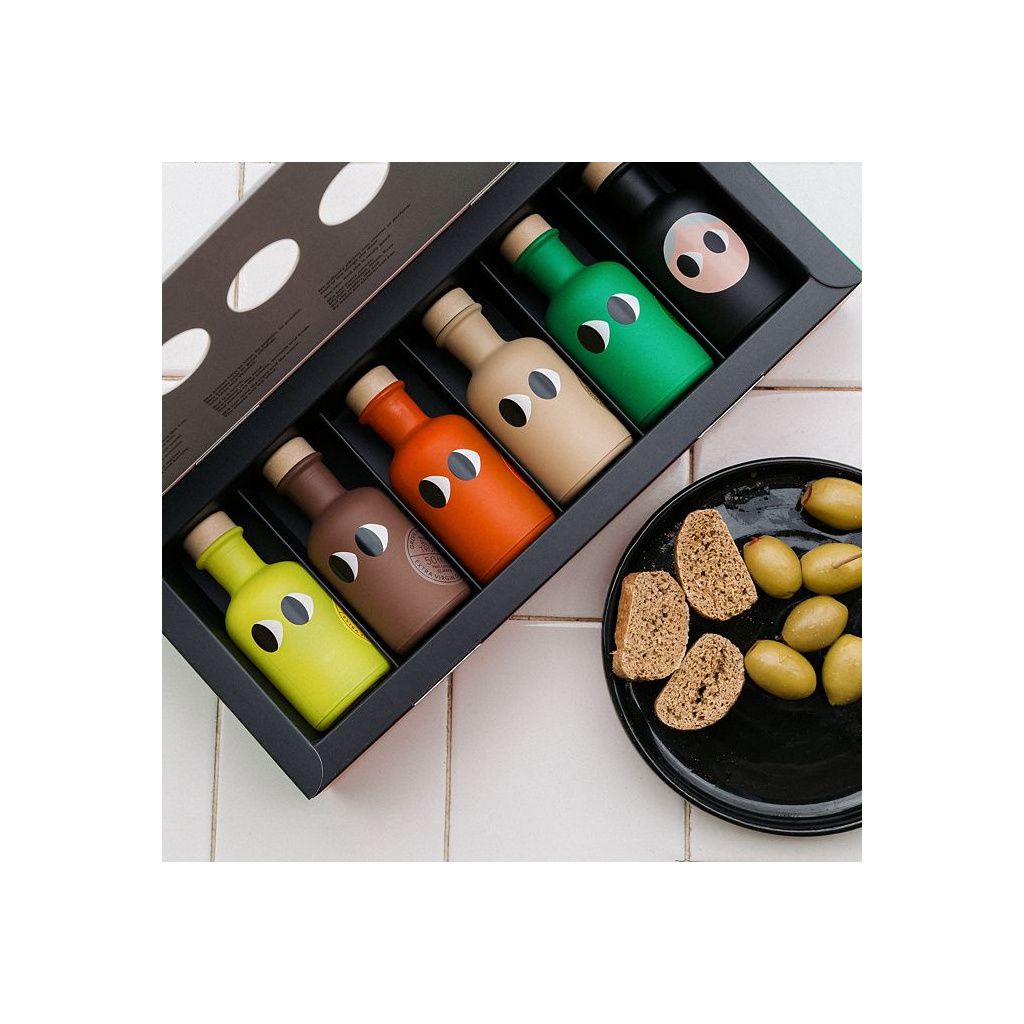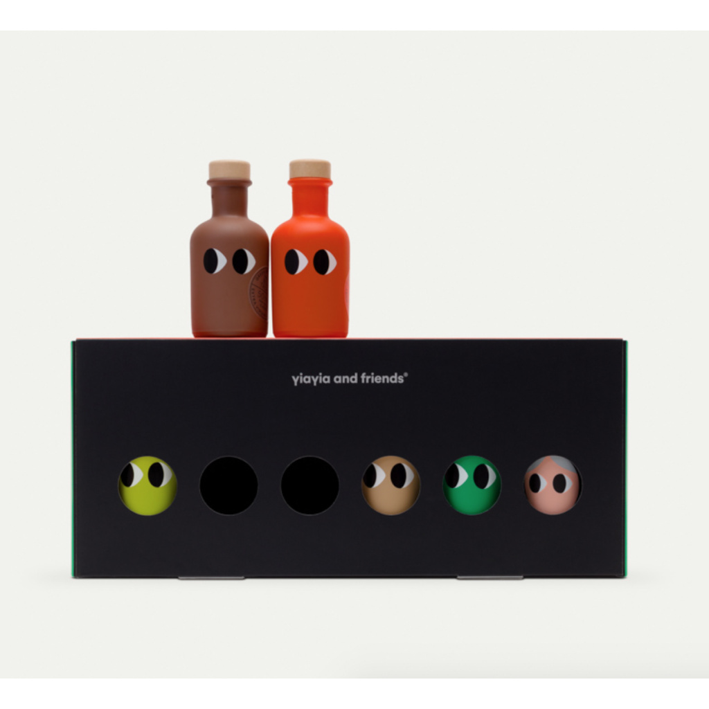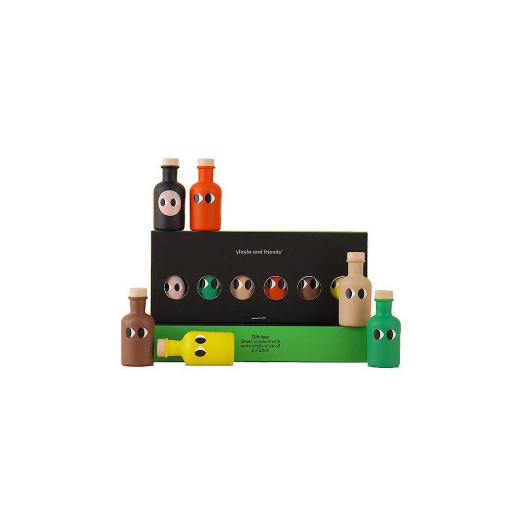 Introducing our special box featuring six all-time favorite flavors! Dive into the delightful world of yiayia and friends with our assortment of extra virgin olive oil minis: tangy lemon, earthy truffle, spicy chili, refreshing basil, pungent garlic, and the beloved original EVOO.