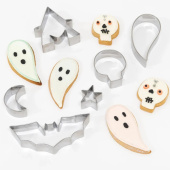 Make creepy cookies for Halloween with this terrific cookie cutter set. It includes 6 cutters - a ghost, witch, bat, skull, crescent moon and star. Which shape will you make, or will you create them all for a thrilling platter of treats?