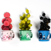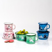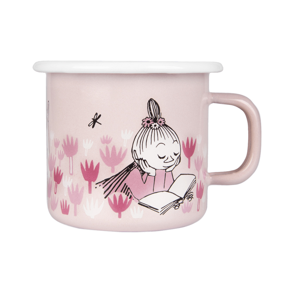 You can enjoy both hot and cold drinks from this pink-coloured Moomin Girls mug. The heart of Muurla's enamel products is carbon steel with a double enamel coating. It is durable and suitable for traditional table settings and camping, cottages or boats. We recommend drying the product well after washing. Capacity 2,5 dl. Machine washable. Not for microwave use. Designed in Finland.