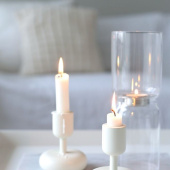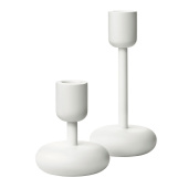 The 2 pc Nappula candleholder set features both the big 183 mm and small 107mm candleholders. White highlights the clean, simple design. Alone or grouped together, the candleholders make a stunning centerpiece. Reflect a soft, warm light that brings relaxed ambience to any interior. A thoughtful birthday, wedding or housewarming gift. Tapered candles recommended.