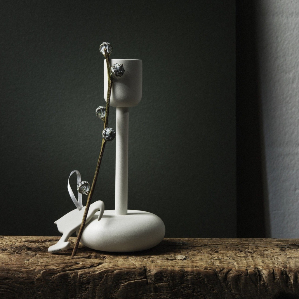 Designer Matti Klenell took inspiration for Nappula from a peculiarly shaped table with ‘swollen’ feet. His interpretation was to create a candleholder with a tall, elegant stem standing on a solid, round base. Nappula’s signature silhouette has become a modern Nordic design classic. The seamless blend of contemporary and vintage elements creates high impact. The 2 pc Nappula candleholder set features both the big 183 mm and small 107mm candleholders. White highlights the clean, simple design. Alone or grouped together, the candleholders make a stunning centerpiece. Reflect a soft, warm light that brings relaxed ambience to any interior. A thoughtful birthday, wedding or housewarming gift. Tapered candles recommended.
