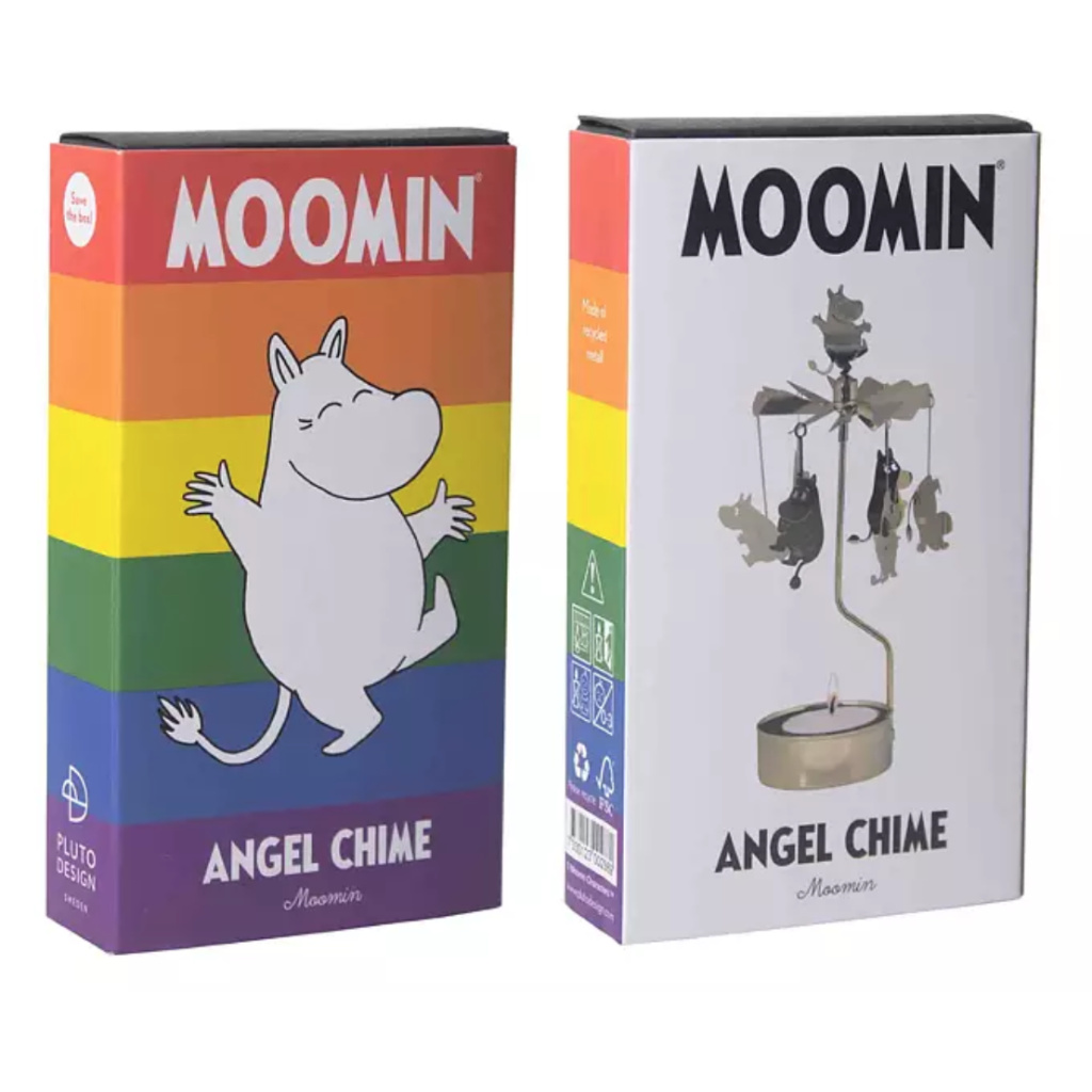 This rotating candle holder from Pluto Produkter awakens remembrances of childhood! The top of the holder spins with the heat of a lit candle. This rotating candle holder has different shapes of Moomintroll, and it is a perfect gift for a Moomin fan. A tealight candle is included in the gift boxed package. Size: 7,5 x 17 cm. Material: Metal.