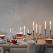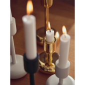 Adored by many, designer Matti Klenell's sympathetic Nappula collection combines vintage and contemporary design elements. Inspired by an odd-looking old table at the Nuutajärvi glass museum, Klenell created a collection that continues to be a perennial gift favourite. Now available in polished brass, the different-sized candle holders can be combined to make a radiant ensemble.