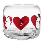 Spread the love with Moomin by Muurla Heart collection. Nostalgic Heart illustration brings a lovely feel to your everyday moments. Moomin candle holder for a tealight. The Moomin Heart candle holder can be used as a candle holder for a tealight candle, or as a bowl for small goodies. Hand made. Material soda-lime glass. Hand wash only. Ø 9 cm / h 8 cm.