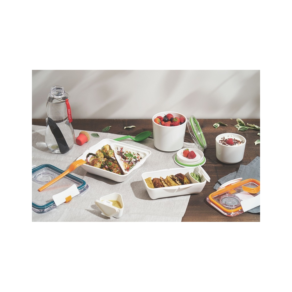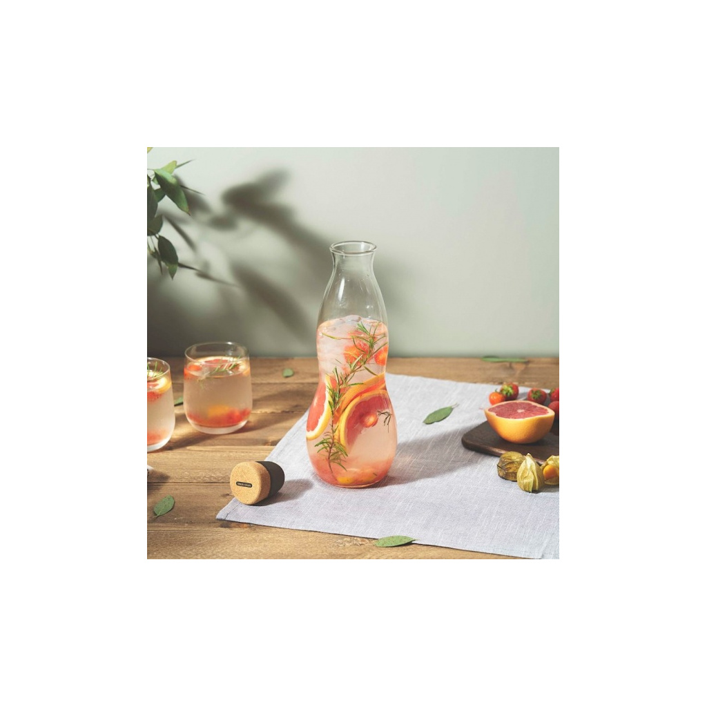 - wykonanie: tritan wolny od BPA (korpus), naturalny korek, silikon (uszczelka korka), stal nierdzewna (blokada),