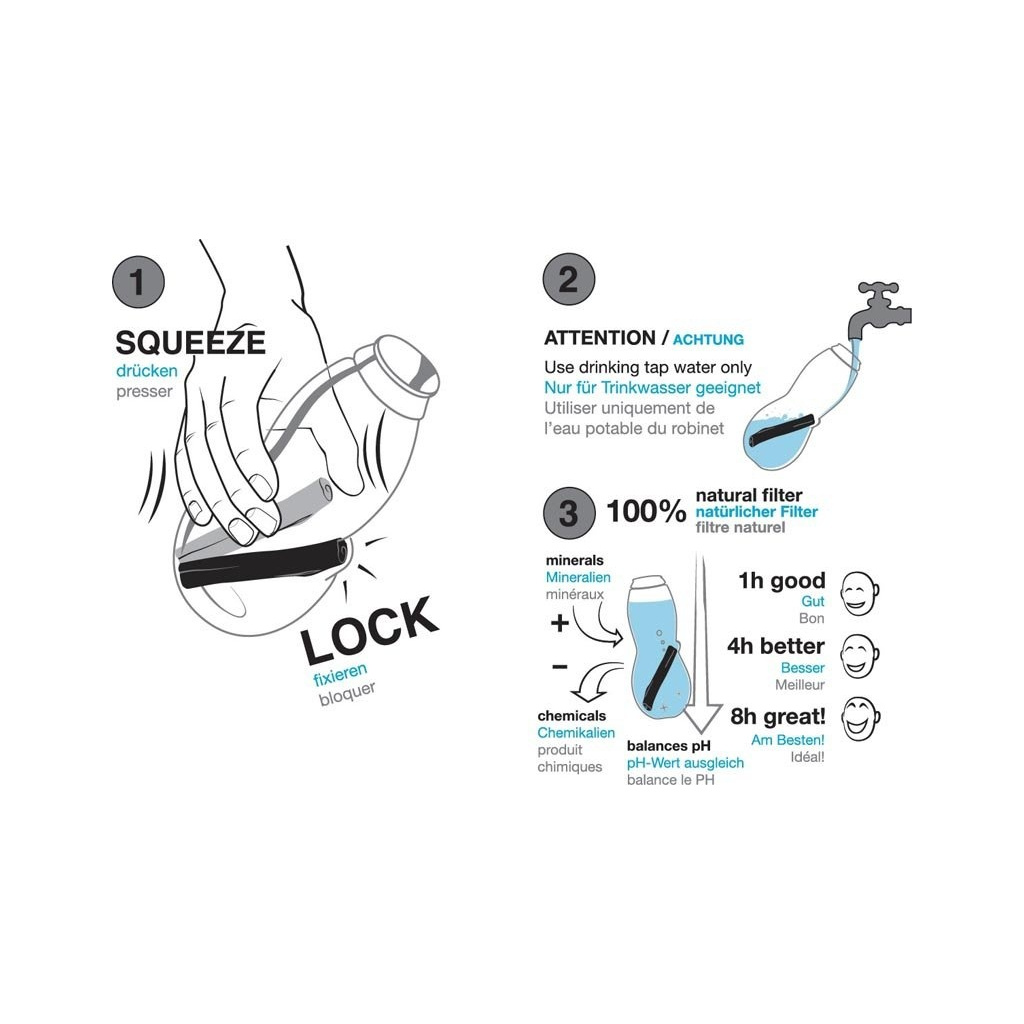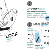 UWAGA! Tritan, z którego wykonana jest butelka, to najwyższej jakości tworzywo osiagajace najlepsze noty pod względem trwałości i odporności na pękanie. Jednak producent szczególną uwagę zwraca na instrukcję umieszczania węgla filtrowego w butelce. Niezastosowanie się do jej wytycznych może powodować uszkodzenia, pęknięcia, i inne skazy na butelce, które nie podlegają reklamacji.