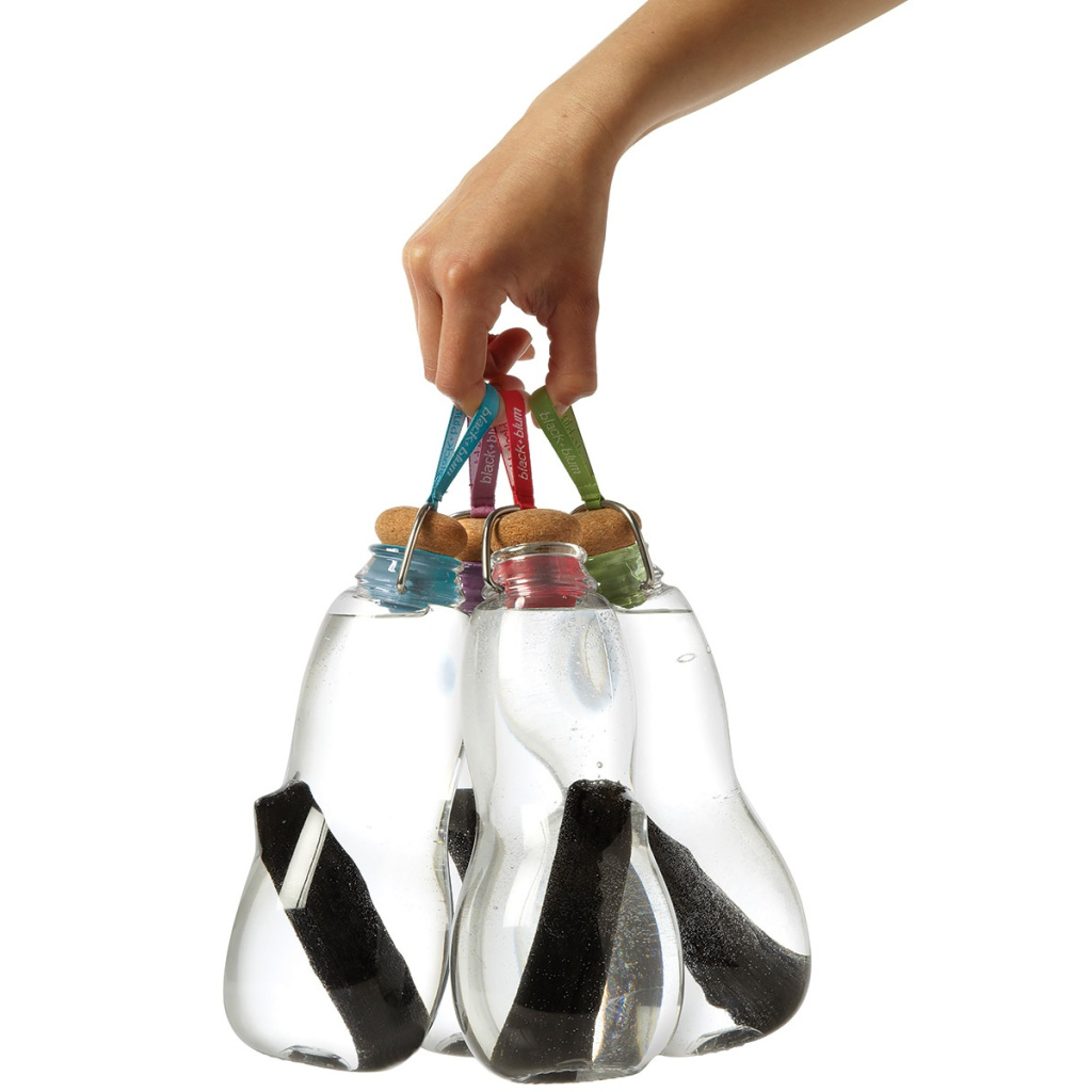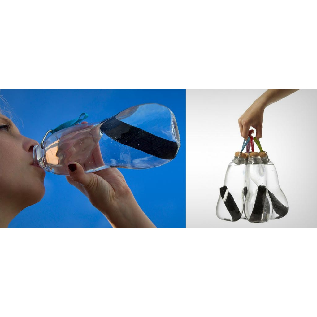 - butelka przeznaczona do filtrowania pitnej wody z kranu (pochłania jony chloru i zanieczyszczenia, ale uwalnia m. in. żelazo, wapń, magnez),