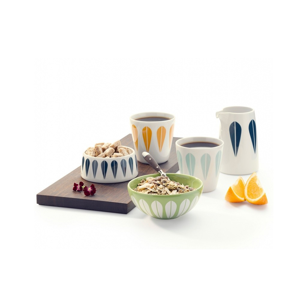 Sugar bowls in porcelain bearing the iconic ‘Lotus’ pattern designed by Norwegian artist Arne Clausen in 1964. Available in multiple colors. Dishwasher and microwave safe.