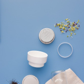 - złożona ze:słoika z szerokim otworem (0,5 l), podstawy ceramicznej, silikonowegopierścienia, stalowej wkładki, metalowej pokrywki, instrukcji,