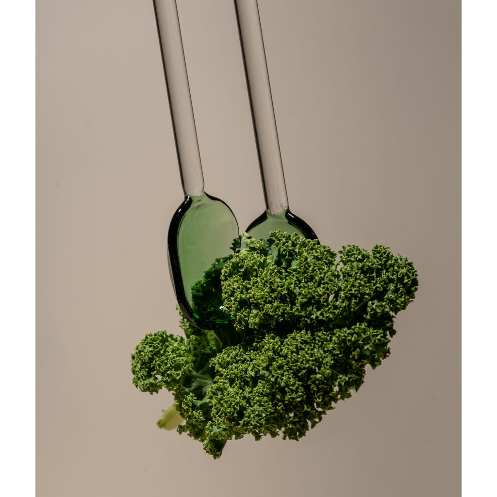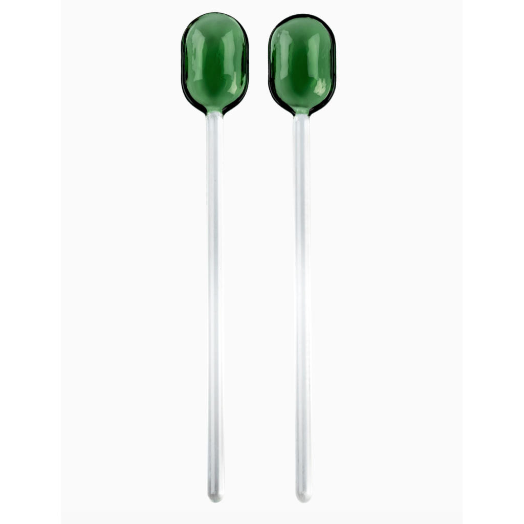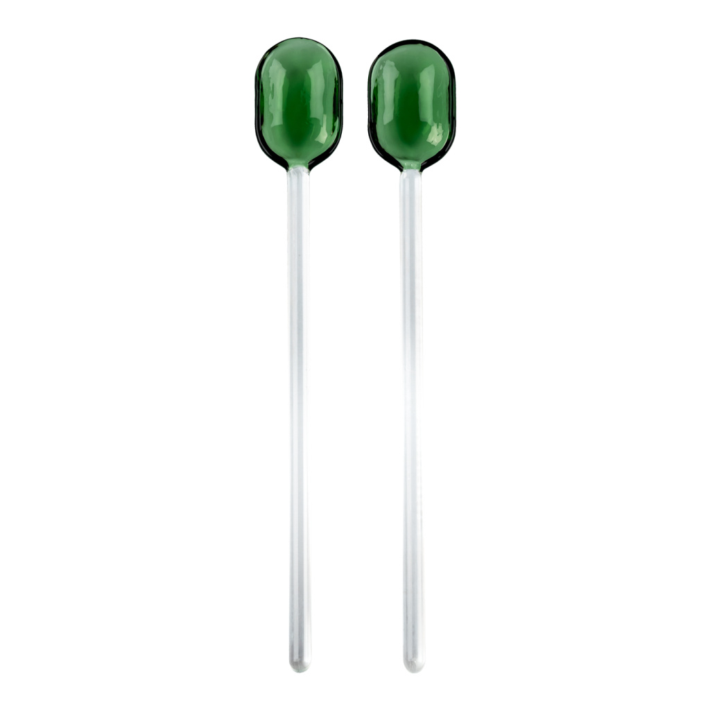 Komplet szklanych łyżek do serwowania SALAD SERVERS Set2 Clear-Green
