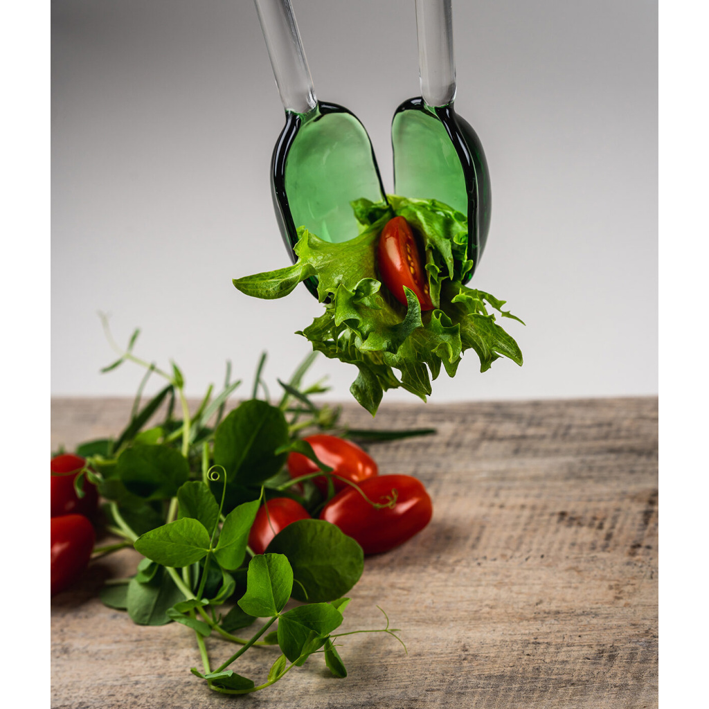 Serve fresh salad & greens with these servers handmade of glass!