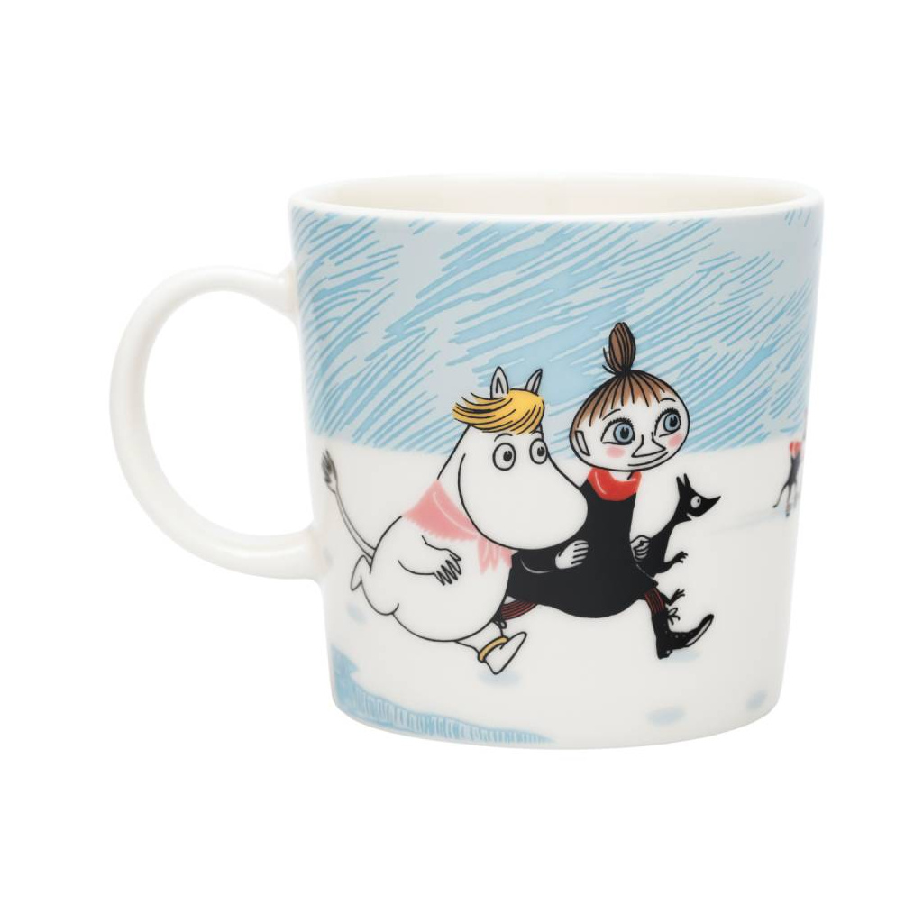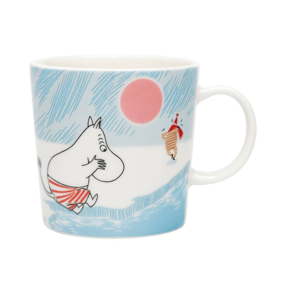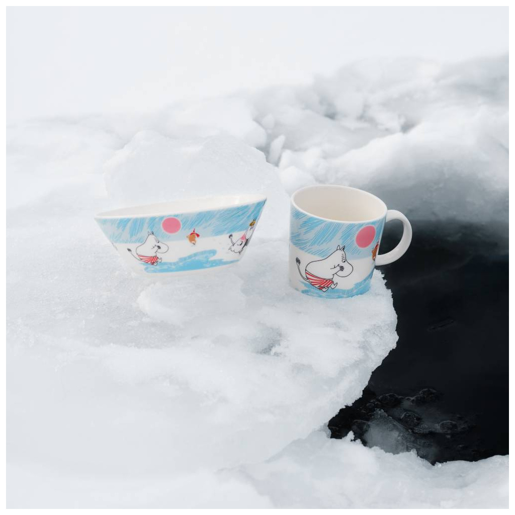 Beautiful light blue Moomin Arabia mug 0,3L, Ice swimming. Material: vitroporcelain. Machine washable, oven and microwave safe. Designed in Finland. Made in Thailand.