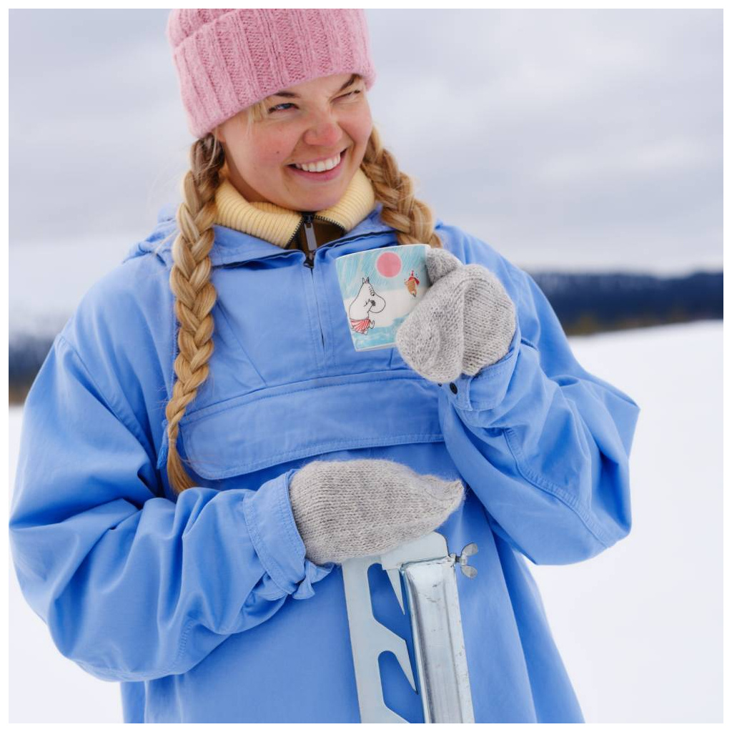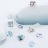 Mr Brisk’s secret to staying fit and healthy is ice dipping. Mymble and Snorkmaiden are charmed by his sporty spirit. Unfazed, Moomintroll dives into the icy water, eager to win their admiration. The 2025 Winter Seasonal Collection Ice swimming is the final ode to Moomin’s winter sports adventures.