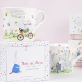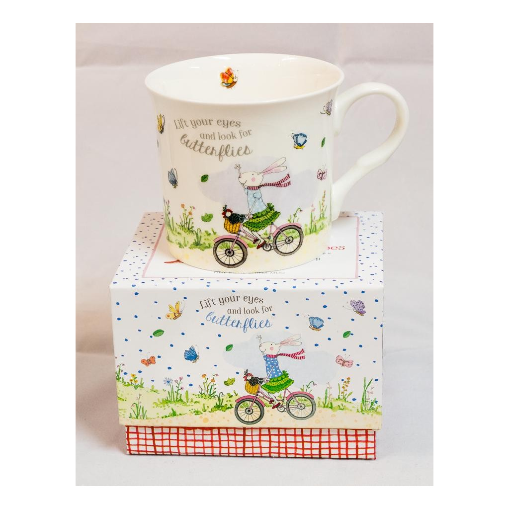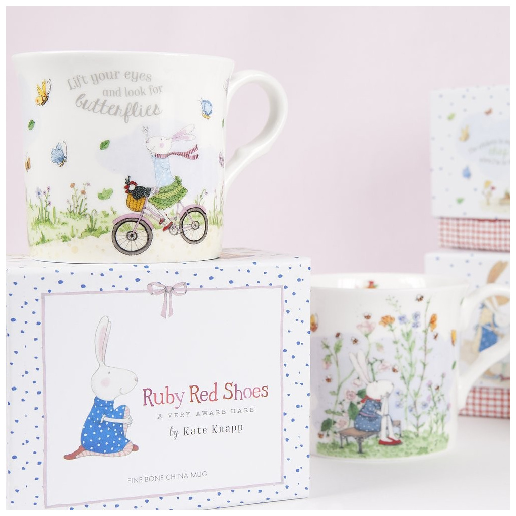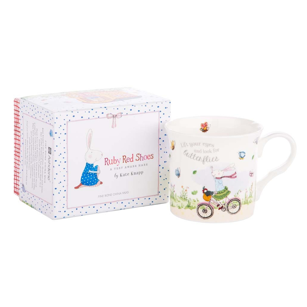 Ruby Red Shoes fine bone china mug by Ashdene. Our favourite girl is on her bike chasing butterflies. Comes with beautifully illustrated box. Kate Knapp is and Australian Illustrator and Artist.