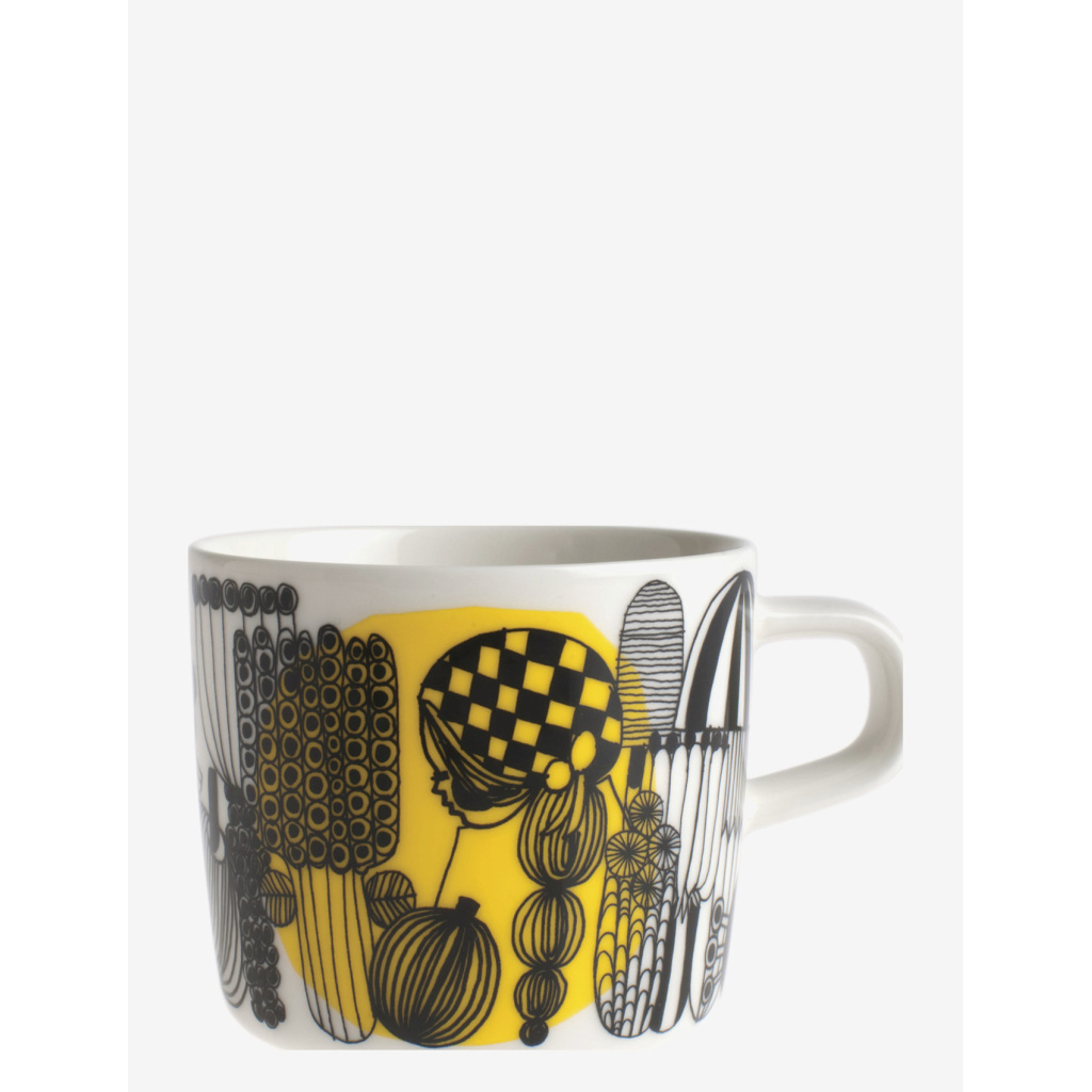 Kubek z porcelany z uchem 200 ml SIIRTOLAPUUTARHA Mug White-Black-Yellow by Marimekko