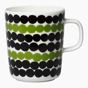 Kubek z porcelany z uchem 250 ml SIIRTOLAPUUTARHA Mug White-Black-Green by Marimekko