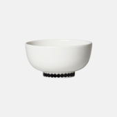 This small Oiva rice bowl is decorated with the black and white Räsymatto pattern and it is made of white stoneware that is dishwasher, oven, microwave and freezer safe.