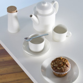 Porcelanowy mlecznik z serii Teema z pokrywką z naturalnego korka. Kolor: natural white. Pojemność: 200 ml. Źródło photo/Producent: IIttala, Finlandia.