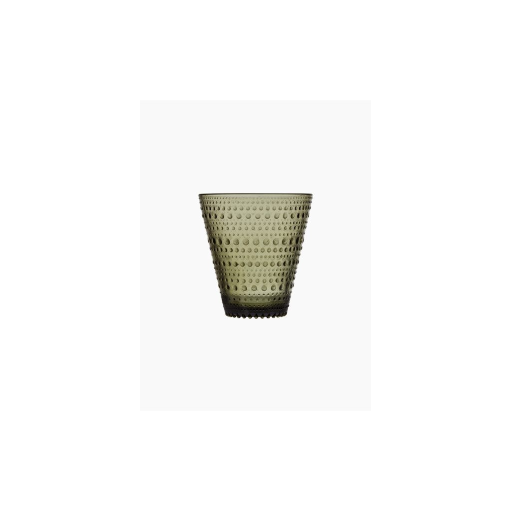 he Kastehelmi tumbler is a classic example of Finnish glassware. Delicate yet durable drinkware that fits any table setting. Moss green adds natural elegance. The 2 pc glassware set makes a great gift.