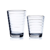 Szklanki zaprojektowane w 1932 roku przez Aino Aalto to jeden z ponadczasowych produktów z oferty Iittala. Kształt naczyń zainspirowany został kołami jakie rozchodzą się po powierzchni wody przy uderzeniu kropli. Oparte na prostym, klasycznym wzorze szklanki zyskują na pojawieniu się rytmicznych prążków.