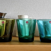Szklanka o pojemności 210 ml z kolorowego szkła projektu Kaj Franck. Do wody, soku. W komplecie 2 sztuki. Źródło photo/Producent: Iittala, Finlandia.