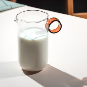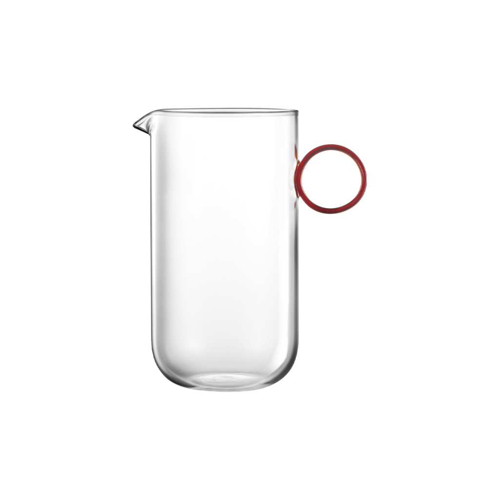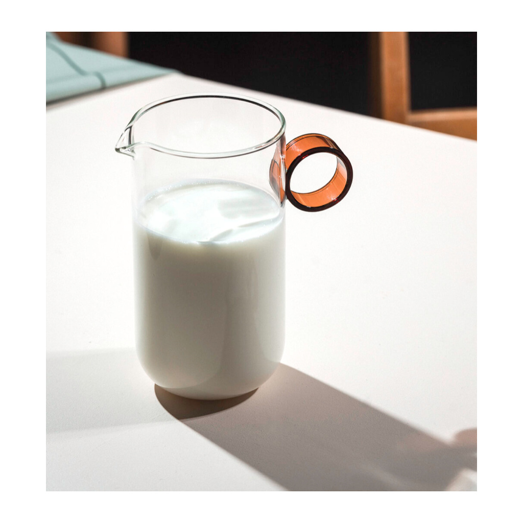 Loop cream pitcher has a simple and stylish design in clear glass. The collection’s characteristic detail, the loop, carries and amber hue serves as a handle. This pitcher is a perfect milk can or creamer to your coffee or tea setting.