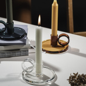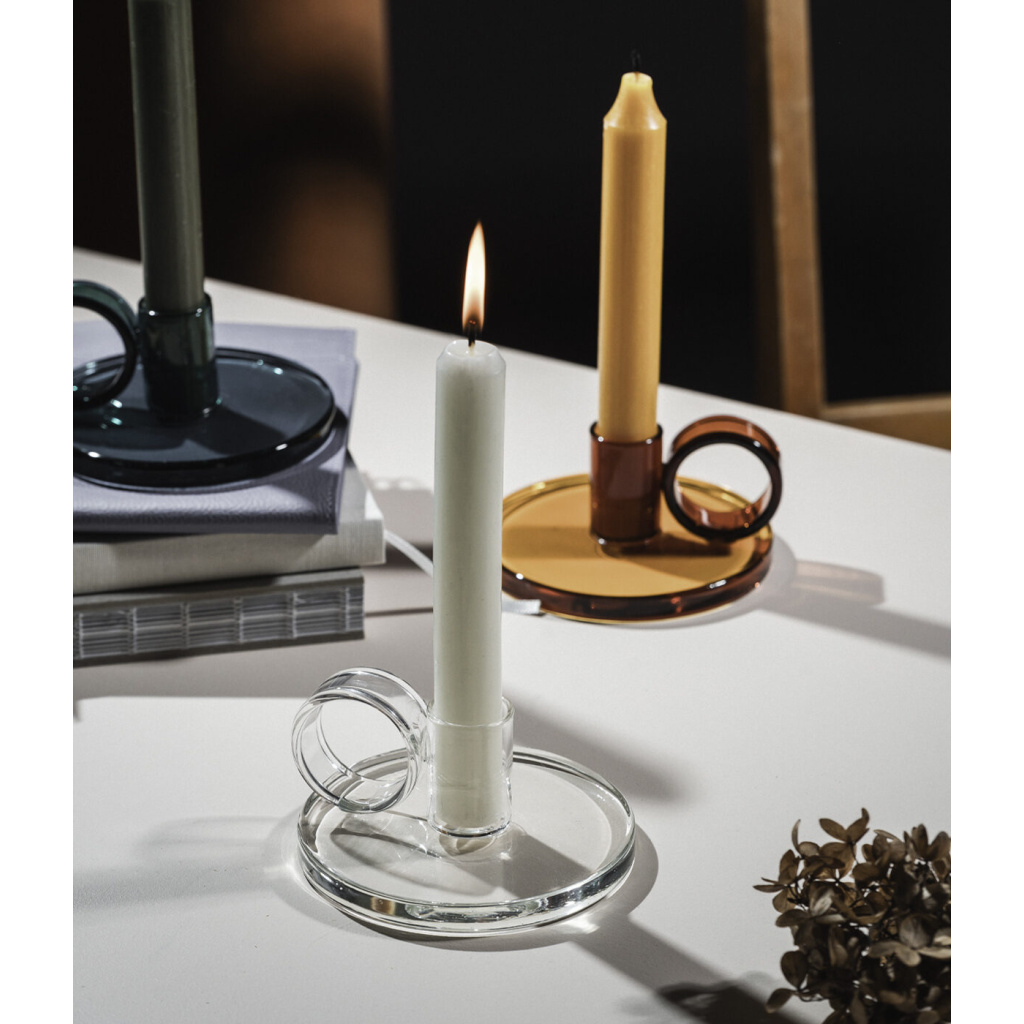 The Loop candlestick holder is a modern version of a classic portable candle holder. It is made of borosilicate glass and collection’s characteristic detail, the loop, serves as a handle. Comes in three colour variations.