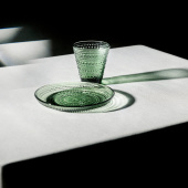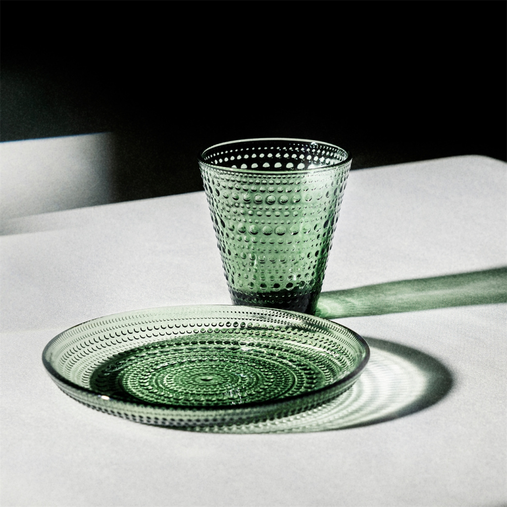 Designed by Oiva Toikka, the Kastehelmi series brings delightful morning dewdrops to your table setting. When designing Kastehelmi, Toikka was inspired by little pearl-like dewdrops on leaves after the night. A new colour, pine green, has now been added to the natural colours of the Kastehelmi range.