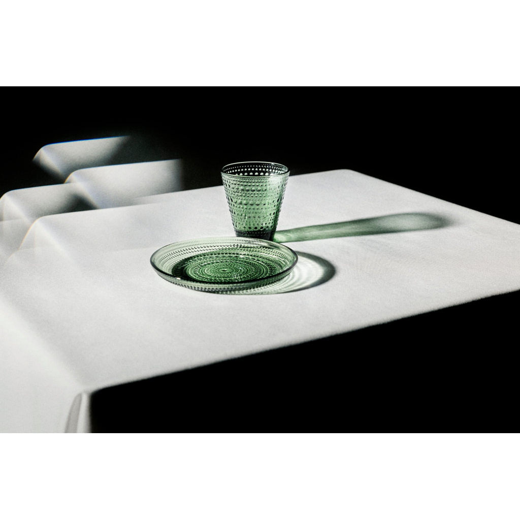 Designed by Oiva Toikka, the Kastehelmi series brings delightful morning dewdrops to your table setting. When designing Kastehelmi, Toikka was inspired by little pearl-like dewdrops on leaves after the night. A new colour, pine green, has now been added to the natural colours of the Kastehelmi range. By combining different Kastehelmi pieces and colours, you can create a fascinating table setting that reflects your personality. The Kastehelmi plate (170 mm) is perfect for tapas, appetisers and desserts. The Kastehelmi pieces are manufactured at the Iittala glass factory in Finland. The plate is dishwasher-safe.