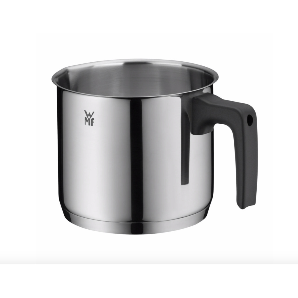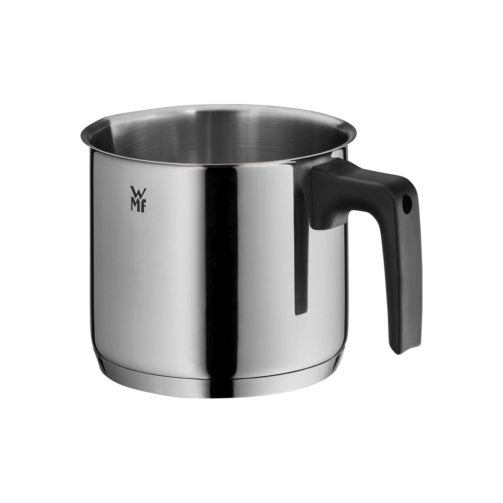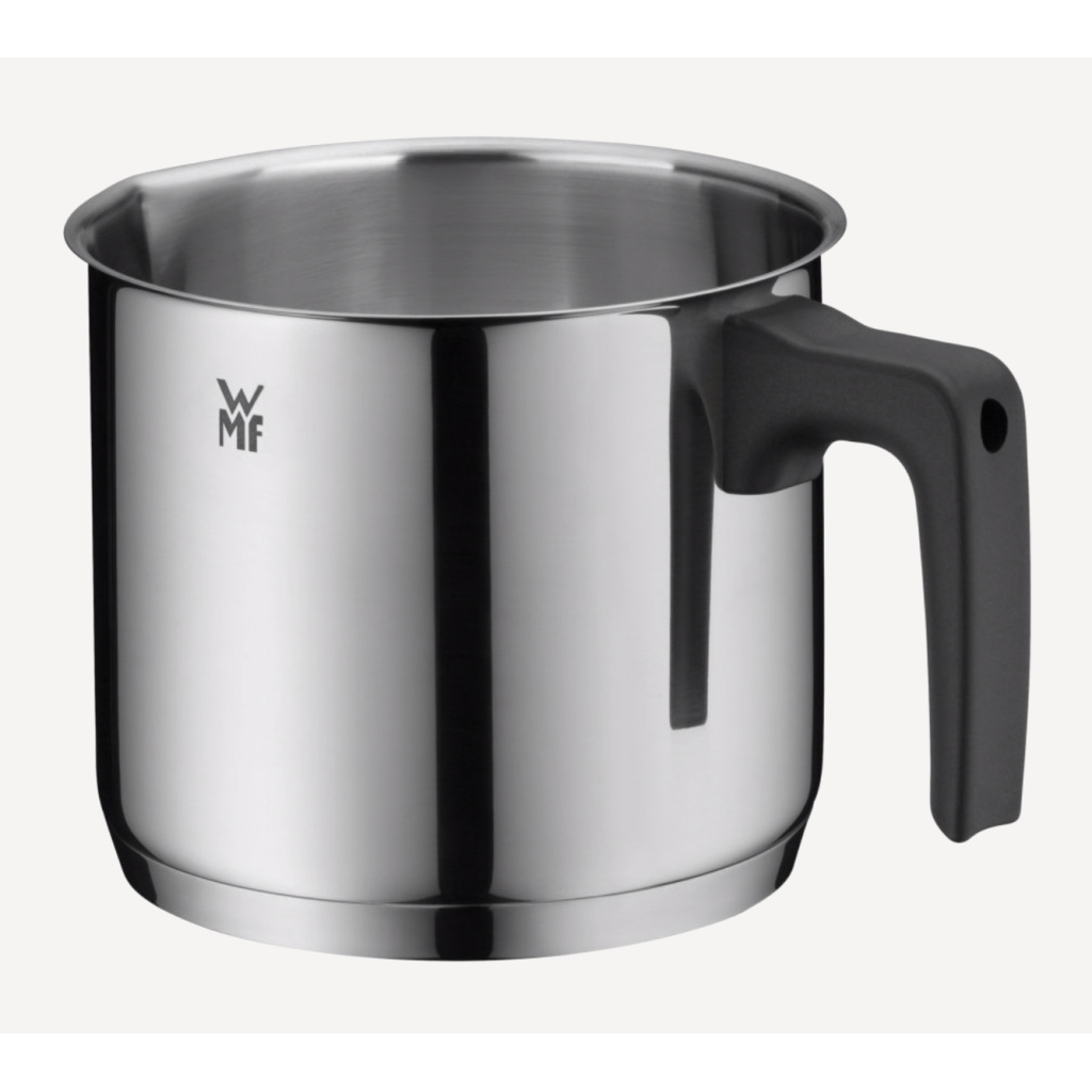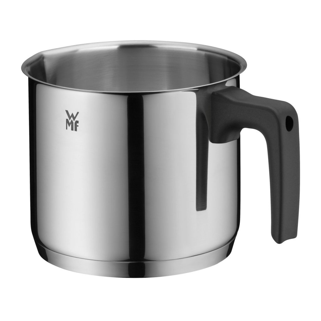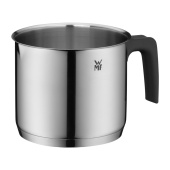 Rondelek do mleka WMF o średnicy 14 cm wykonany jest z polerowanej stali nierdzewnej Cromargan® z plastikowym uchwytem. Nadaje się do podgrzewania i gotowania delikatnych potraw, takich jak mleko lub sosy śmietanowe.
