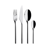 With round handles and prongs and positioned at a diagonal line, the solidity and weight are of this set are easily conveyed. These utensils are simple in form so that you can enjoy sophisticated design at its purest. Includes:- Knife- Dinner fork- Salad fork- Table spoon- Teaspoon