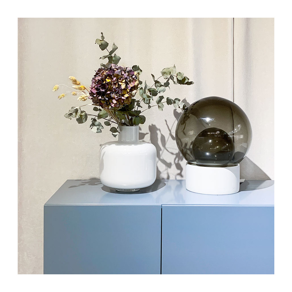 The large Ming vase is designed by Carina Seth Andersson and it is made of white mouth-blown glass. We recommend washing it by hand.