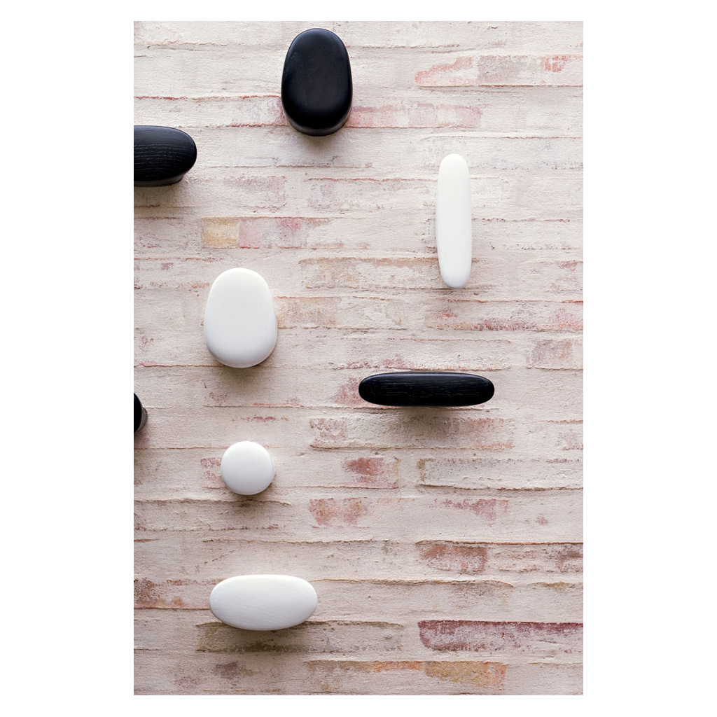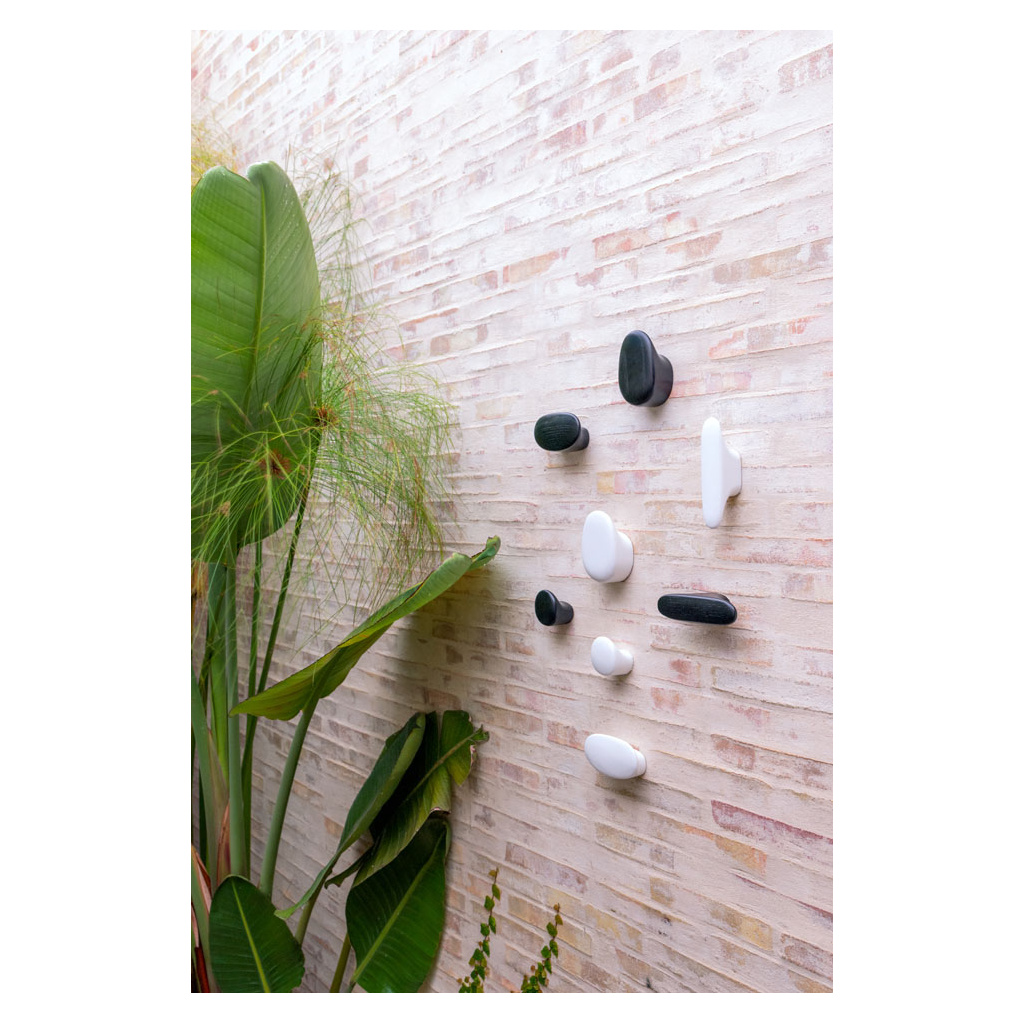 Thanks to their rounded designs, the ENKI wall hooks look like pebbles that have been eroded across the ages by the forces of the ocean. Made of oak, they come in 4 different shapes with a choice of 3 finishes: clear, matt varnish or an open-pored finish painted in black or snow white.