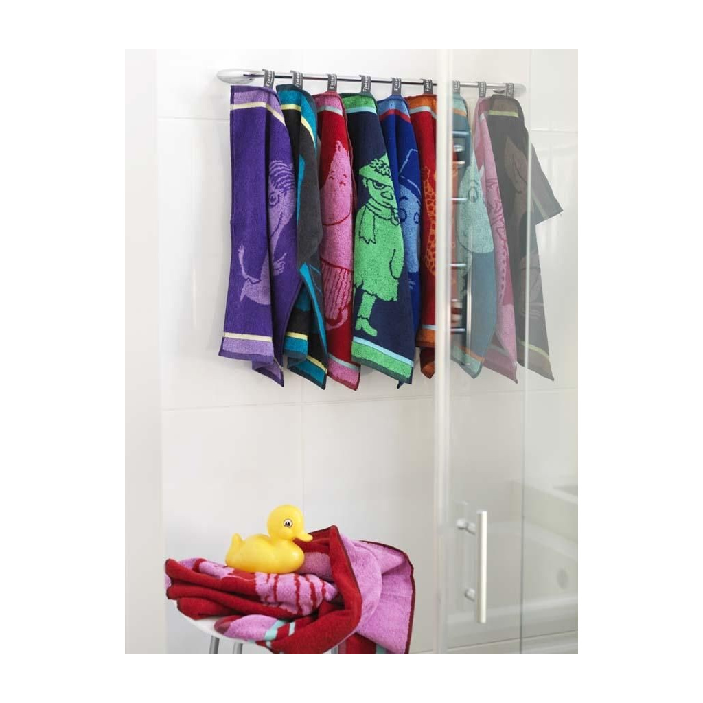 The hand towel by Finlayson presents a lovely pattern with Moomin characters in a stylish colours. This hand towel featuring Moomins is magical. It will bring some love to your bathroom.