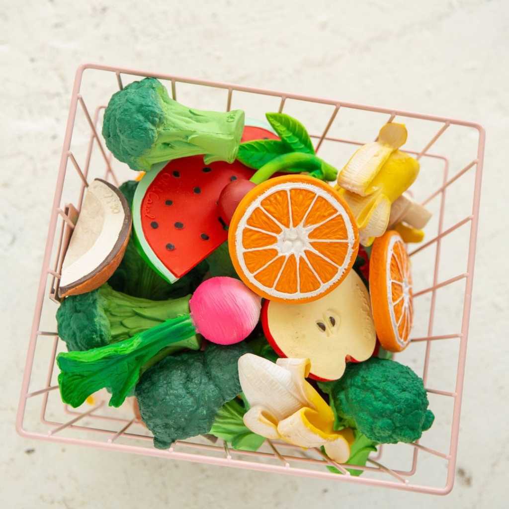 Oli & Carol to młoda hiszpańska marka prosto z wibrującej słońcem, fascynującej Barcelony. To właśnie tam dwie siostry, Olimpia i Carol wpadły na pomysł stworzenia linii kreatywnych i radosnych, a przy tym naturalnych zabawek dla dzieci Oli and Carol, będących zarówno gryzakami, jak i zabawkami kąpielowymi. Najnowsze kolekcje ekologicznych gryzaków Oli and Carol: warzywa i owoce i zabawki do kąpieli Oli and Carol H2Origami od razu stała się hitem na całym świecie. Naturalnie wyglądający banan, arbuz, marchewka, brokuł, jarmuż i awokado nie tylko budują zdrowe przyzwyczajenia żywieniowe od pierwszych dni życia, ale również rozwijają sensorykę i motorykę maluszka.